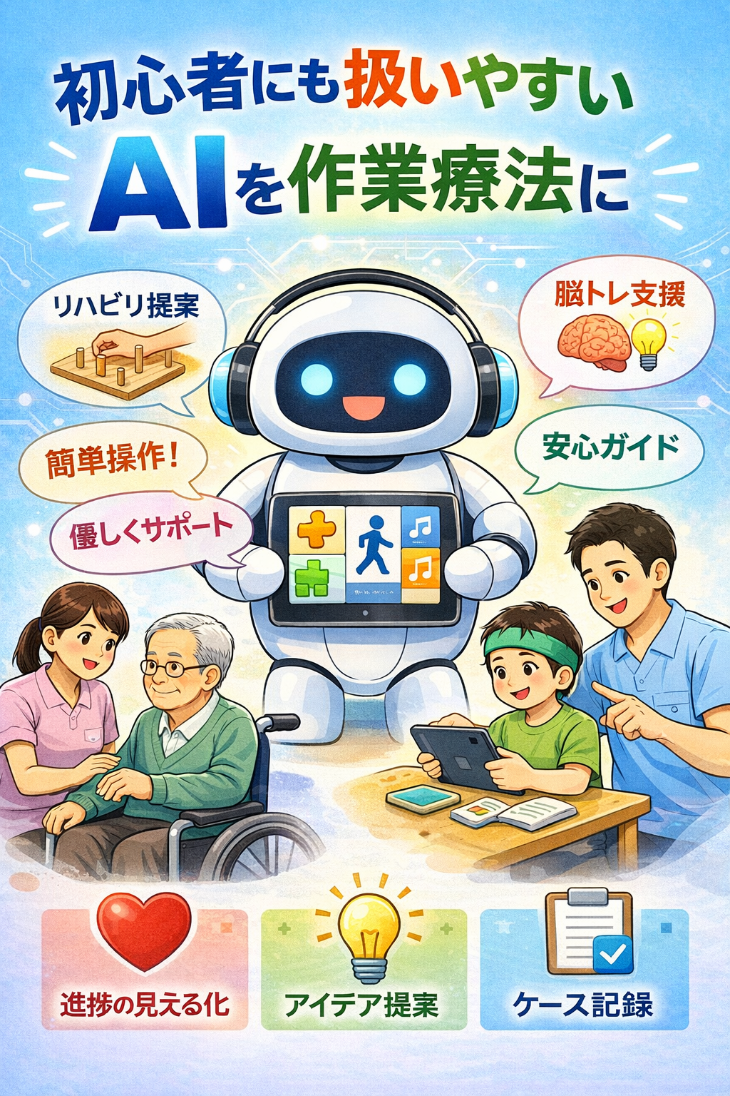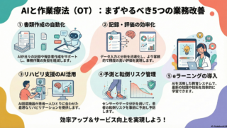 この記事では、初心者でも扱いやすい対話型生成AI(会話で文章などを作るAI/例:ChatGPT)を、作業療法(OT)の「記録・説明・準備」に限定して安全に入れる導入手順をまとめます。